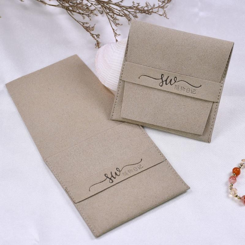 Crafted from soft, lint-free microfiber, these envelope-style jewelry pouches offer gentle scratch-free protection for your delicate pieces. The secure flap closure and custom branded band keep items safely in place, making them perfect for storing rings, earrings, necklaces, or small accessories. Ideal for gift packaging, travel, or daily organization, they combine minimalist elegance with practical durability to safeguard your jewelry wherever you go.