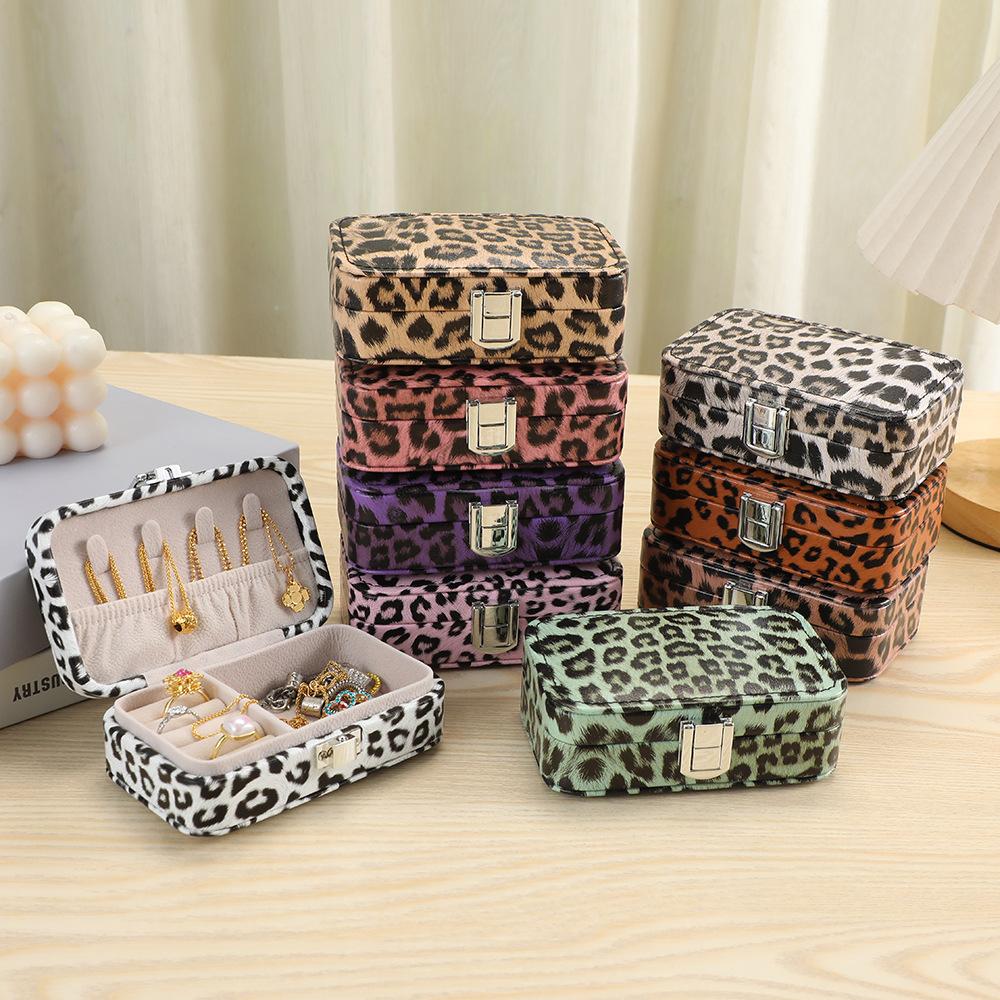 //Leopard Print Jewelry Box, 12×7.5x4cm Modern Minimalist Rectangle Portable Travel Case